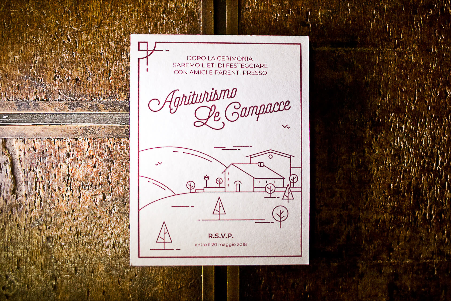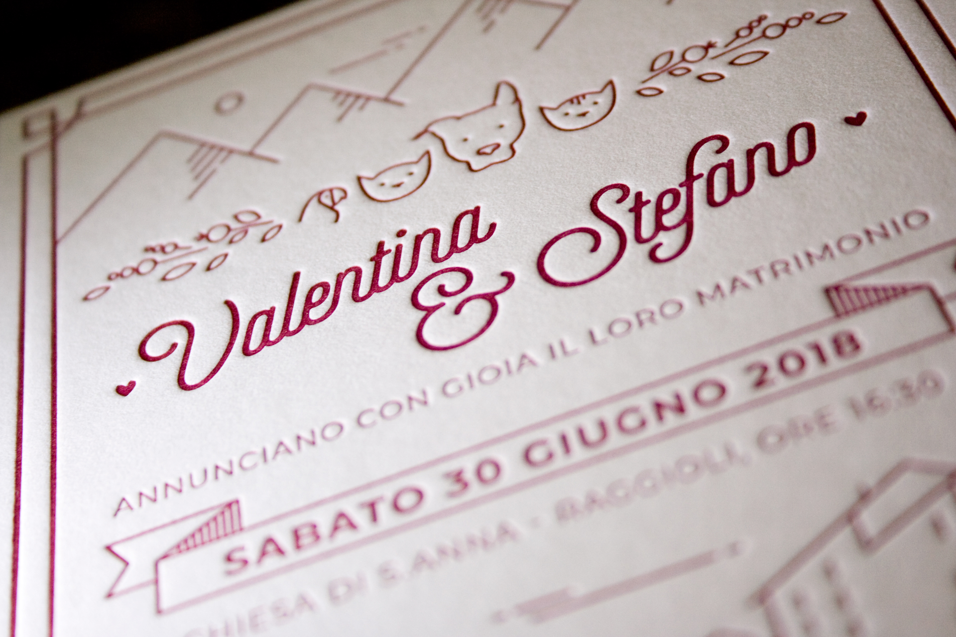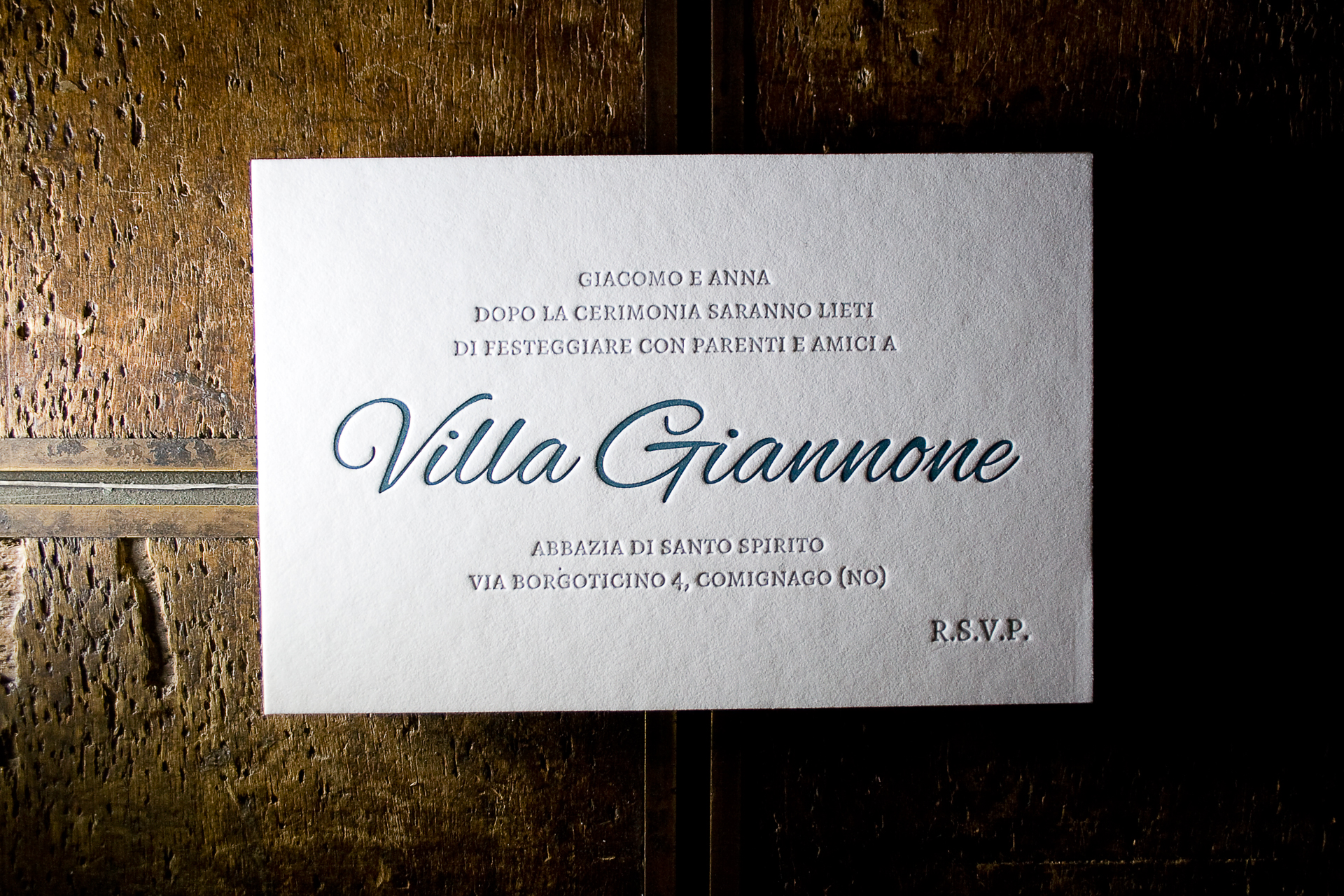 Partecipazioni di nozze Formato: 15 x 21 cm Carta: Gmund Cotton Linen Cream 600 gr Stampa: letterpress (cliché) + stampa a secco Colori: 2 (letterpress) + 1 stampa a secco Invito ricevimento Formato: 10 x 15 cm Carta: Gmund Cotton Linen Cream 600 gr Stampa: letterpress (cliché) Colori: 2 Buste Carta: misto cotone Altre lavorazioni:…