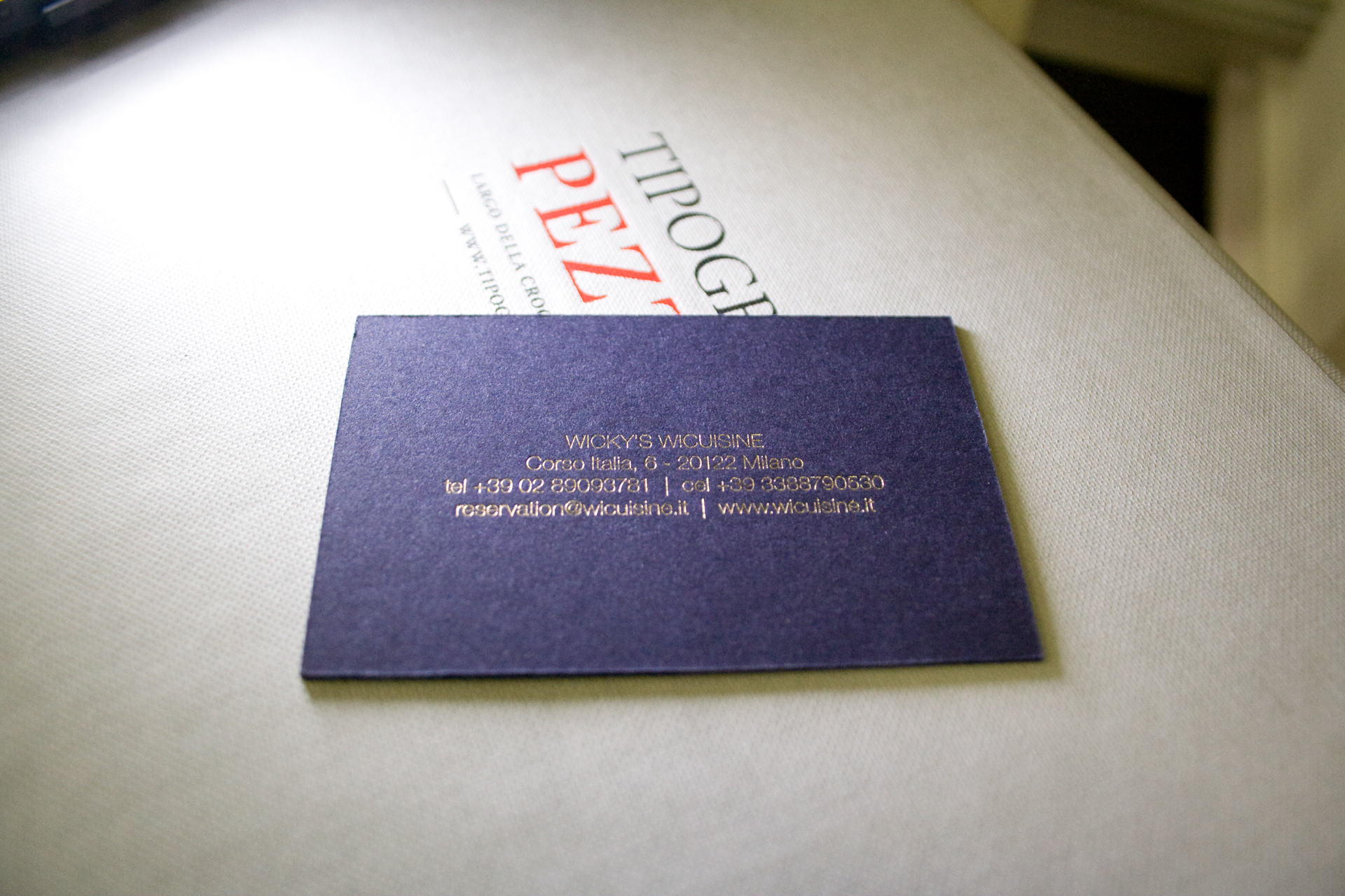 Biglietto da visita Formato: 8,5 x 5,5 cm Carta: Gmund Cotton 600 gr Stampa: letterpress (cliché) con lamina a caldo Colori: 1 + 1 (oro a caldo) Porta scontrino Carta: Gmund Cotton 300 gr Stampa: letterpress (cliché) con lamina a caldo Colori: 1 + 1 (oro a caldo) Altre lavorazioni: doppia cordonatura Packaging prodotto Carta:…