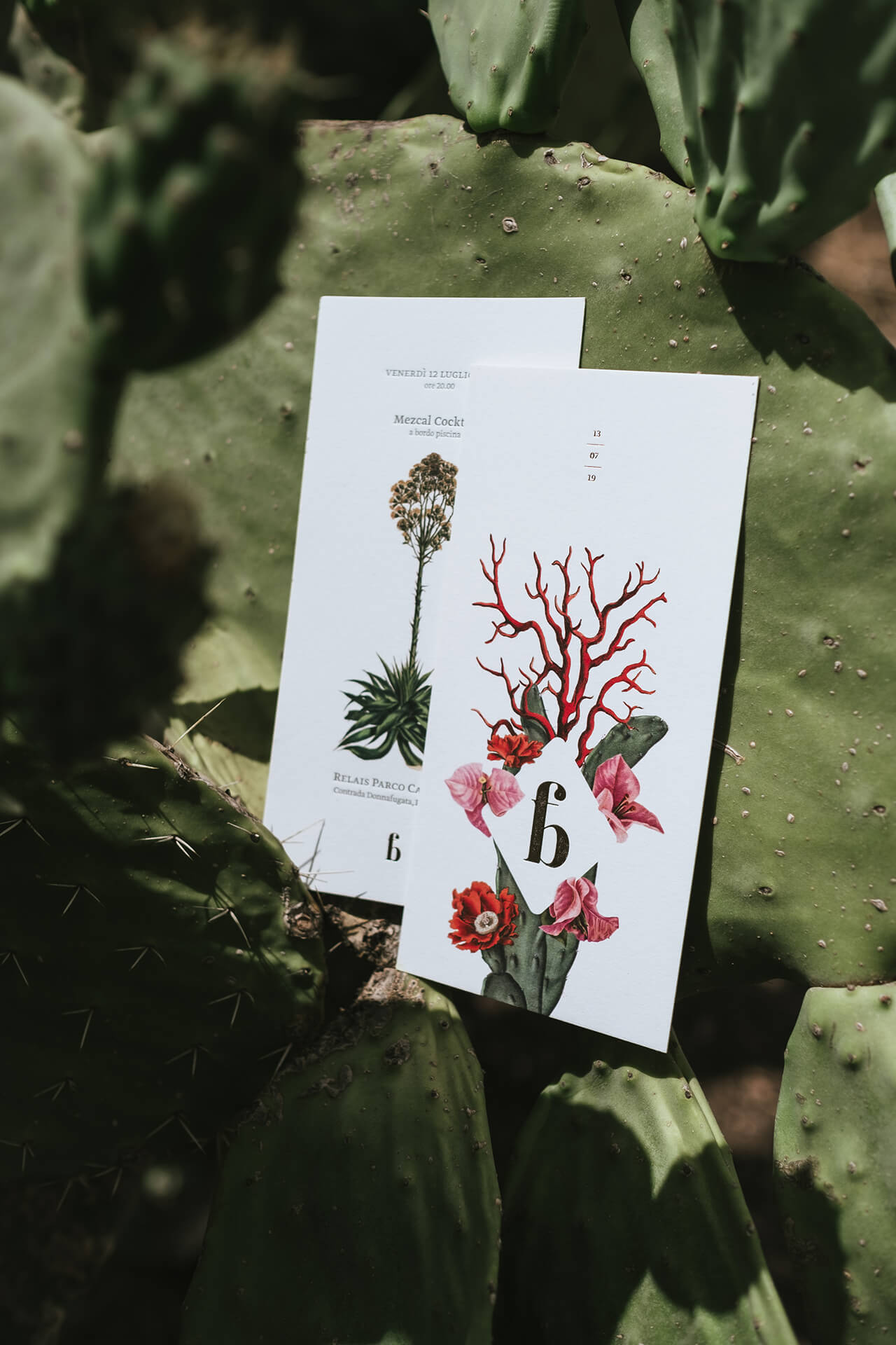 Formato: 8,5 x 5 cm Carta: Cordenons Wild White 450 gr Stampa: letterpress (cliché) Colori fronte: 1 (Pantone Niagara) Colori retro: 1 (Pantone Niagara)